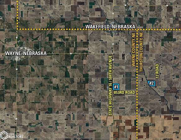 *This auction is being conducted in partnership with Dave Ewing - please contact him for more information - or Thurston and Wayne County, Nebraska Farmland Auction - Mark your calendars for Wednesday, June 10th, 2026, at 10:00 AM Offering 298.83 m/l acres of premium farmland in Thurston County and Wayne County, just south of Wakefield, Nebraska. This highly productive tract includes approximately 295.71 tillable acres with a strong 68.7 average NCCPI. Featuring elite Kennebec silt loam along with productive Alcester and Zook soils, the farm offers an ideal blend of well-drained uplands and moisture-retentive Class I & II soils supporting consistent, high-yield row crop production. Both tracts are located within the Lower Elkhorn Natural Resources District (NRD), an area known for responsible groundwater management and long-term water sustainability. The farms overlie the Ogallala Aquifer system, providing a reliable groundwater source that supports strong agricultural production throughout the region. The area is anchored by a strong agricultural economy, supported by multiple grain markets, ethanol facilities, and livestock feeding operations. The 2 tracts will be offered via Live Auction with Online Bidding and will take place on Wednesday June 10th, 2026, at 10:00 AM (CT) at the Elkhorn Valley Bank, 411 E. 7th Street, Wayne, NE 68787.