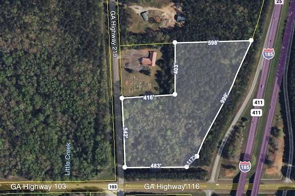 Est $7,358/moThis maybe the best intersection for development in Harris County Ga. This property is on the NW corner of exit 25 on I-185 at the intersections of Hwy 219/103/116. It's 15 minutes to the Columbus area and 15 minutes from West Point. Heavy traffic from Kia, suppliers and employees using Hwy 103 to I-185. Hwy 103 is main connection from I-85 and I-185. Traffic county on Hwy 116 is 4570. I-185 is also heavy traveled from Atl to the beaches in the Fla panhandle.