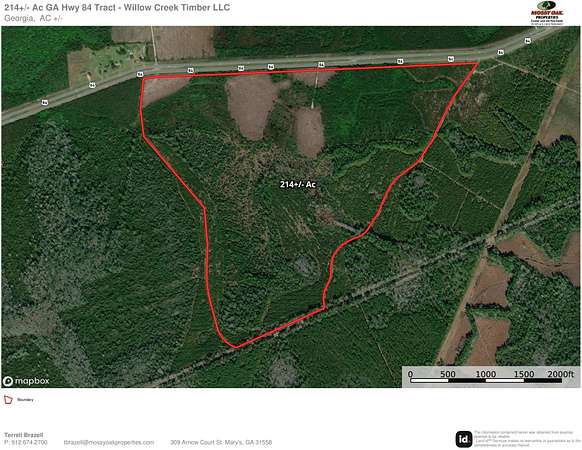 A great recreational and hunting tract in Homerville, GA! This 214 +/-acre property offers excellent hunting opportunities and great potential for timber replanting, making it an ideal investment for outdoorsmen and landowners. With frontage on GA Hwy 84, the property has convenient access while maintaining the seclusion and privacy that hunters and outdoorsmen want. Whether you're looking for a hunting property, a property to grow timber, or a private retreat, this tract delivers!