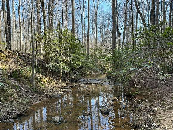 This property offers a high percentage of useful land. Floodplains associated with the streams are narrow, and only the streambeds are designated on national wetlands inventory maps. No FEMA floodplains are designated on the property. A plat prepared in 1980 describes the tract as 100.69 acres. One graveled driveway enters the eastern portion of the tract. There are no structures or other improvements on the land.