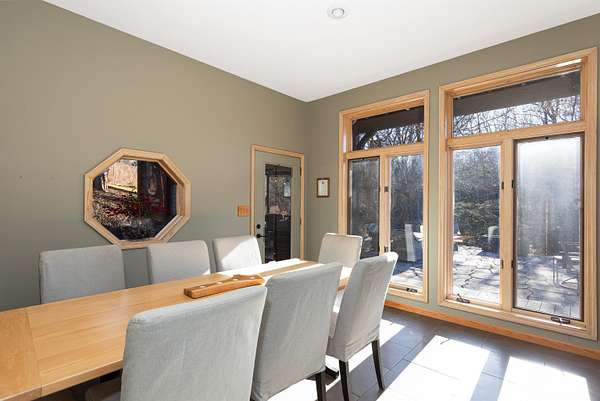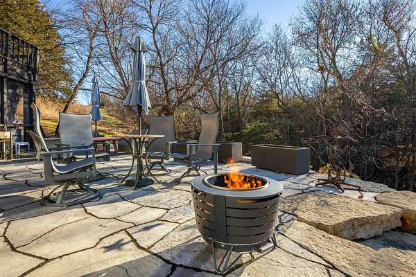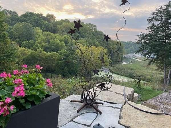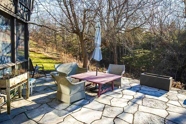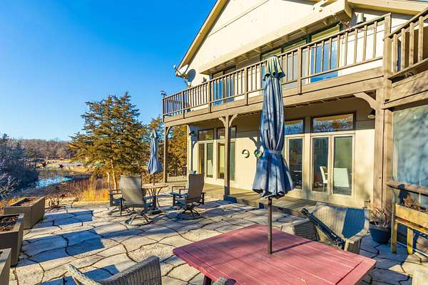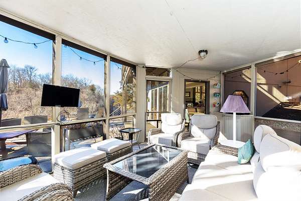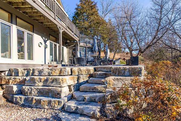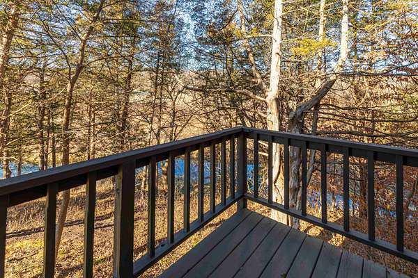 Enjoy one of the best views in the Territory and wonderful privacy in this four-bedroom, four-bath home. You can watch fishermen pulling trout from Smallpox Creek or check out golfers on the tee box of #2 of the East Course. Secluded yet close to the Owners Club amenities, this location offers a great balance of privacy and convenience. Light pours in from morning to sunset through window walls in both the great room and adjoining family and dining rooms. Meal prep is a pleasure in the open kitchen with custom cabinetry, granite counters, and stainless-steel appliances. The kitchen and family room have wide-format porcelain tile floors; the rest of the home is hardwood. Each spacious bedroom is ensuite and has direct access to a private deck with lovely views. All the baths have been upgraded, including the master bath with a soaking tub and a walk-in shower. The 2.09-acre site, surrounded by green space, has been professionally landscaped to showcase native plants, including large areas of prairie wildflowers. A wide variety of wildlife - mammals and birds - are drawn to the site by the water flowing in the creek, providing year-round enjoyment. The screened porch is well furnished, leading to a large stone terrace with a wonderful view of the creek and marina. The owners are leaving two fire pits for your enjoyment. House has been upgraded to natural gas. Sold with furnishings to be transferred on a separate bill of sale.
