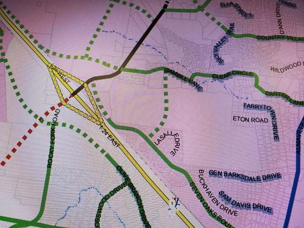 From I-24E, Almaville Rd Exit 70, go east, Left on Almaville Rd, Left Seven Oaks Blvd. 50 Acres starts beside last house located at 1162 Seven Oaks Blvd. Land is adjacent to new I-24 Interchange to be built at Enon Springs West / Rocky Ford Road Exit.