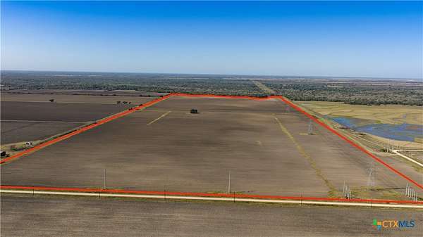 2,163.64 acres of land in Ganado, Tx currently used for row crop and pastureland. 12,125 ft of road frontage on FM 710, 8400 ft of road frontage on Thellman Rd and 7,650 feet of frontage on Galow Rd. Level terrain with 1,218 acres of irrigated farmland, 572 acres of dry farmland and 355 acres of native pastureland and brush with Sandy Creek frontage and Devers Creek Frontage. There are three irrigation water wells, 11 pipeline easements and 3 electric transmission lines. The soil consists of Dacosta sandy clay loam (47%), Nada-Cieno frequently ponded complex (25%), Laewest clay (14%), Inez fine sandy loam (7%), and other soils typically found in Jackson County. The cropland has seasonal plantings of rice, corn, wheat, and grain sorghum. Call for more information!!