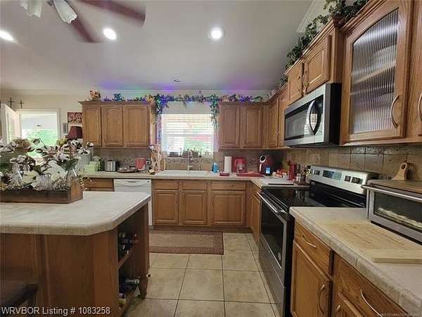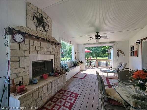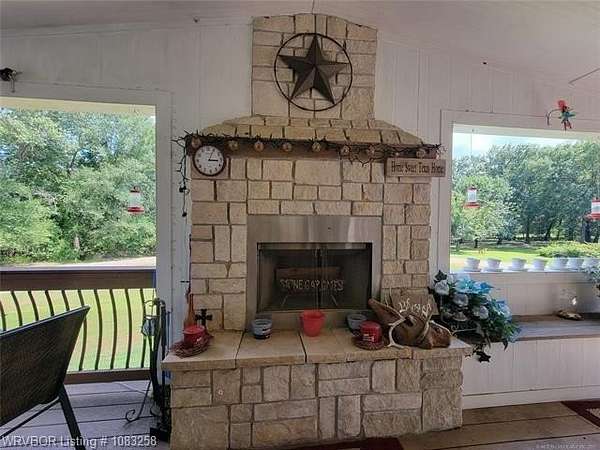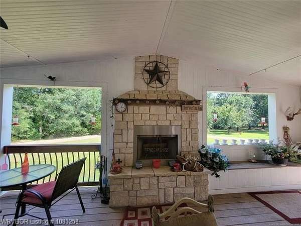 Gorgeous 120 acres m/l secluded hunter's paradise with a fully furnished 4 bed, 3 bath modular home with 2 living areas, and a country style tile thru out the house. The master has a walk in closet with built in makeup counter, drawers and shelving, an ensuite with another big walk in closet. The 2nd and 3rd bedrooms both have walk in closets and a pullman bath between the 2 bedrooms. The 4th bedroom has a walk in closet and is next to the 3rd full bath. The utility room has a stackable washer/dryer, laundry sink, and an exit door. The kitchen has an island and a pantry. A dining area separates the kitchen and living room with an open concept. The living room boasts a fireplace and a new 76 inch TV. Exiting the dining area is the covered, enclosed back porch with a fireplace and an extended deck area for a grill and table. The property boasts 4 ponds, a capped artesian well, a hard shale pit quarry and blazed trails. There's a corral with a loading chute and a pond next to a 3 stall loafing shed with an attached enclosed room. 3 deer feeders, a single and 2 story deer stands and fenced feed plot. Entrance has a solar gate with codes. There's a whole home generator. This all comes fully furnished with extra refrigerator and 2 freezers in the well house shed, a Kawasaki side by side, Grasshopper ZTR heavy duty lawn mower and a tractor with mower. The house sits back on a sloped hillside approximately a half mile from the entry gate. Multiple beautiful building sites and a wet weather creek. Too many features to list... a must see!