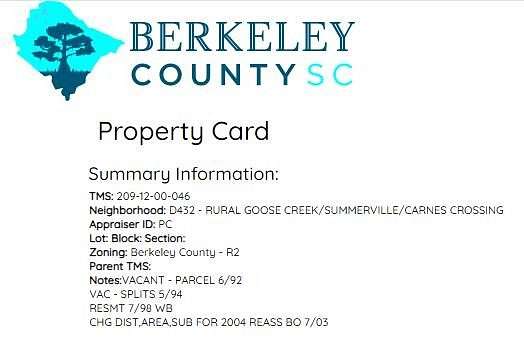 ATTENTION BUILDERS/ DEVELOPERS/ INVESTORS! ALMOST 8 ACRES!! R2 Zoning -- Right around the corner from Carnes Crossroads and this EXPLODING AREA!! (Survey Under Documents) Brand new Roper St. Frances Hospital and medical Complex, minutes from city amenities, Dining, Shopping, Churches, New Schools, Nexton, I-26, Goose Creek, Moncks Corner, & Summerville .. Short drive to Volvo! -- The access point to the property is off Garcia Ln, and is approx. 20 feet wide and widens as it goes back toward the main acreage. (See Pics!) (PLEASE SEE ''MORE''!) PLEASE NOTE! - No studies have been done - ALL the information we have been able to obtain from the sellers, and any/all third-party organizations, including but not limited to city/county and other entities, has been posted to this MLS (under "Documents"). If you do not see the item in question (Plat, Survey, Wetlands JD's, Elevation Cert, Etc., it is because we do NOT have them. -- Unless specifically noted, these items in question, will be the buyer's responsibility, either during the DD period or post-closing. Thank you.