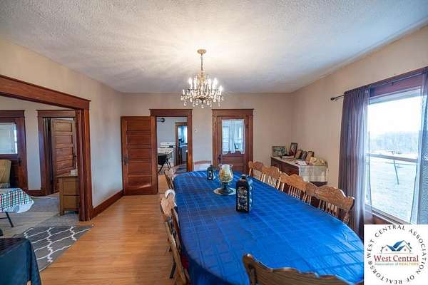 This highly productive 320+- acre farm in Johnson County, Missouri offers an exceptional blend of income-producing farmland, quality pasture, strong recreational value, and a classic country homesite. Ideally located just 6 miles east of Garden City and only 1 mile east of ZZ Highway, the property provides excellent access while maintaining a private, scenic setting. Approximately 140+- acres of tillable ground are currently in production, supported by silt loam and silty clay loam soils. An additional 94+- acres of fully fenced pasture features two large ponds and an automatic waterer, making it well suited for cattle or diversified livestock operations. Three usable grain bins, a 36x54 outbuilding with oversized bay doors, and ample equipment storage enhance the farm's agricultural ability. The recreational appeal is equally impressive. Panther Creek winds through the north end of the farm, creating outstanding wildlife habitat. The timbered areas include marketable walnut and oak, dense cover, and abundant deer sign with well-worn trails, rubs, and scrapes--ideal for hunting and outdoor enjoyment. Overlooking the surrounding countryside is a well-positioned two-story farmhouse. The home includes three bedrooms and a loft upstairs, with a comfortable main level featuring living and dining areas, kitchen, sunroom, mudroom, one bedroom, and a full bathroom. Additional improvements include a detached two-car garage with concrete floor, utilities consisting of rural water, electric, and a drilled well, and a picturesque tree-lined driveway off SW 1225th Road.