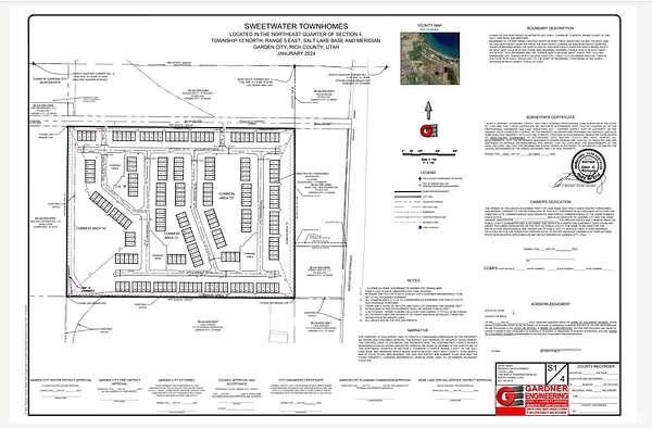 Natural Backdrop: Set against the majestic Bear Lake Valley, the land's natural beauty provides an idyllic setting for a serene and upscale living experience. Development Potential: Customizable Community: The flexible landscape allows for personalized touches in the design of each townhome, ensuring a unique and bespoke living space for future residents. Recreational Paradise: Future homeowners will revel in the proximity to Bear Lake, offering a playground for water sports, hiking, and nature exploration. Strategic Location: Perfectly situated, the land benefits from the tranquility of a small town while remaining within reach of urban conveniences. Seize the chance to be a part of Sweetwater Resort from the ground up. This is more than land; it's the future site of memories, laughter, and legacy. Contact us to explore the potential and join us in shaping a new chapter for Garden City. For inquiries or to discuss the possibilities, please reach out to the listing agent. Your journey to creating Sweetwater Resort begins here. We are moving quickly!! Road construction has been completed for 29 pads! Ready units Completion projection Fall of 2025 $7,760,0000 = ( value of land) +1,640,000 = (Improvements) ---------- $9,400,000 = ( New true value + improvement) This numbers is still increasing contingent on improvements for potential buyers. Envision your future at Sweetwater Resort, a pristine canvas of raw land awaiting transformation into a premier townhome community in the charming town of Garden City, Utah. This untouched expanse offers a unique opportunity to craft a luxurious retreat tailored to the desires of modern families and relaxation seekers. Land Overview: Expansive Acreage: Spanning a generous area, this raw land presents endless possibilities for development, with ample space for a collection of elegant townhomes. 194 TOWNHOMES ARE FULLY APPROVED; Approved Plans: With approval, Sweetwater Resort is poised for creation, promising a seamless transition from vision to reality.