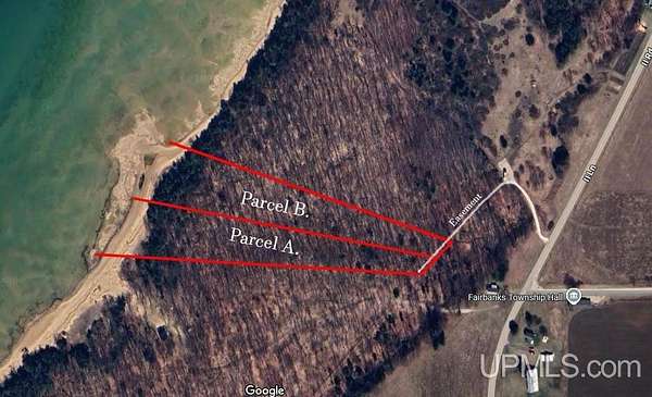 Located on the beautiful Garden Peninsula, this waterfront parcel offers 200 feet of pristine sandy shoreline along with a generous stretch of acreage: perfect for setting up a campsite, parking your RV, or building your dream home. With west facing exposure, you'll enjoy breathtaking sunsets and endless views where soft sand meets the crystal-clear turquoise waters of Lake Michigan. Parcels of this size and quality do not come around often, and those seeking an exceptional slice of prime waterfront will be thrilled with this rare opportunity. While the sandy beach is the star of the show, the beautiful high ground acreage is covered in a mix of hardwoods and conifers, which provide an ideal spot for development or quiet enjoyment of natural beauty. This parcel is being split from a larger tract (pending final township/county approval). While electric has not yet been run, utility easements will be provided so the buyer can bring in service. An adjacent 200 foot parcel is also available, offering the opportunity to purchase both and create a remarkable 400 feet of frontage. Opportunities like this are rare, get in touch today! (This is Parcel B.)( Parcel A. MLS# is 50185632)
