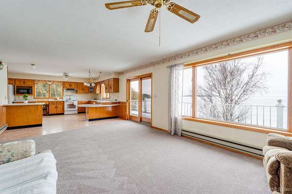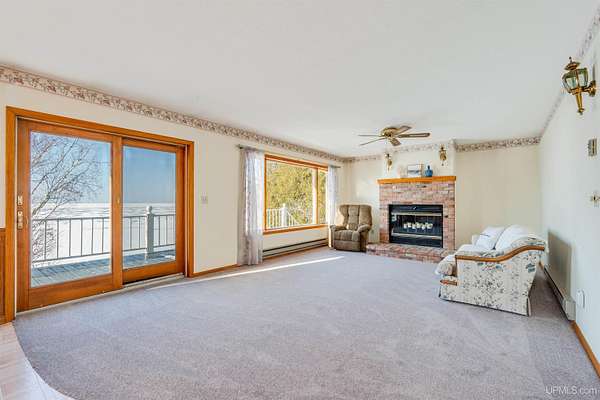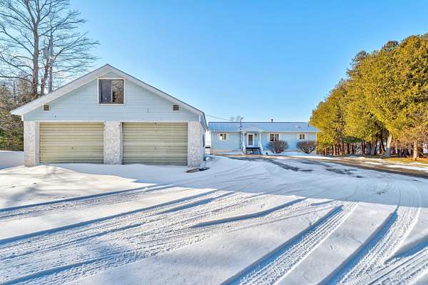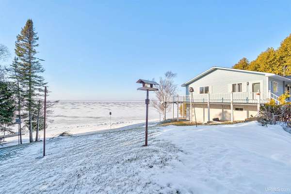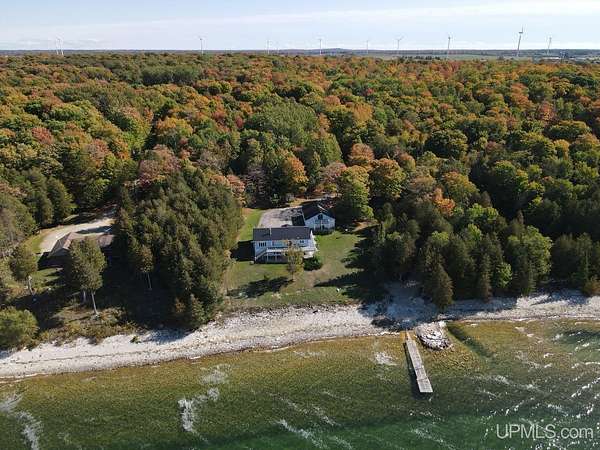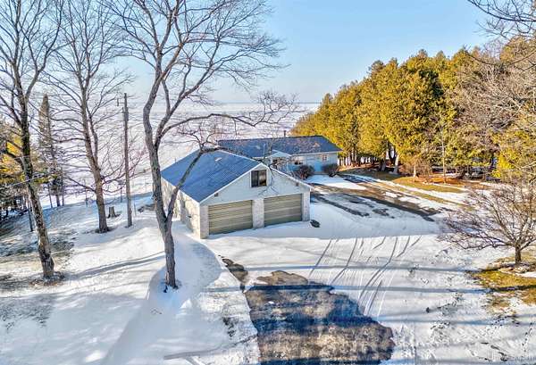 Lake Michigan Waterfront Home - 200' of Frontage on 3 Acres! Enjoy breathtaking Lake Michigan sunsets from this beautiful waterfront home offering 200 feet of frontage on 3 private acres. Recent interior improvements include brand-new carpet in the living room and master bedroom, new flooring in the full main-floor bath, and updated kitchen hardware, giving the main living areas a fresh, move-in-ready feel. Designed for comfortable lakefront living, the home captures stunning water views from the living room, kitchen, and primary suite. The main floor features a spacious living room with new carpet, a real fireplace (chimney removed), and expansive lake views, along with a freshly updated flooring in the full bath, a primary bedroom with new carpet, en suite bath and double closets, a second bedroom, and a convenient laundry room. The kitchen is enhanced with updated cabinet hardware, adding a clean, modern touch while maintaining the home's warmth and functionality. Step outside to the elevated deck with a SunSetter awning--an ideal spot to relax and take in the peaceful waterfront setting. The walk-out basement is a standout space, thoughtfully designed for both entertaining and function. It includes a second kitchen, large living area, wood storage room, canning room, and a double oven--perfect for traditional pasty making. The ceiling is finished with basketball court flooring, adding a unique touch. A sauna with shower and half bath, plus an additional bedroom, creates a true lower-level retreat. Outside, a charming cobblestone patio extends the living space even further. Additional accommodations can be found above the detached two-car garage, where an upstairs living area includes a bedroom, half bath, and beautiful lake views--ideal for guests. A pole barn provides ample storage for a boat and lake toys, while the blacktop driveway leads you into this wooded, private setting that balances convenience with seclusion. With deep water frontage, a 60' rolling dock, and a boat launch area, this property is perfect for boating enthusiasts. A dedicated smokehouse offers the perfect place to prepare freshly caught whitefish right from your own backyard. Located less than one mile from Garden Golf Course and centrally positioned between Escanaba and Manistique, this Lake Michigan retreat offers easy access to shopping and essentials while still feeling worlds away. Whether you're seeking world-class fishing, hunting, or a peaceful waterfront escape, this exceptional property truly has it all. Schedule your private showing today.
