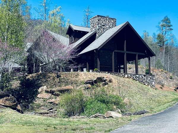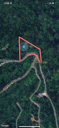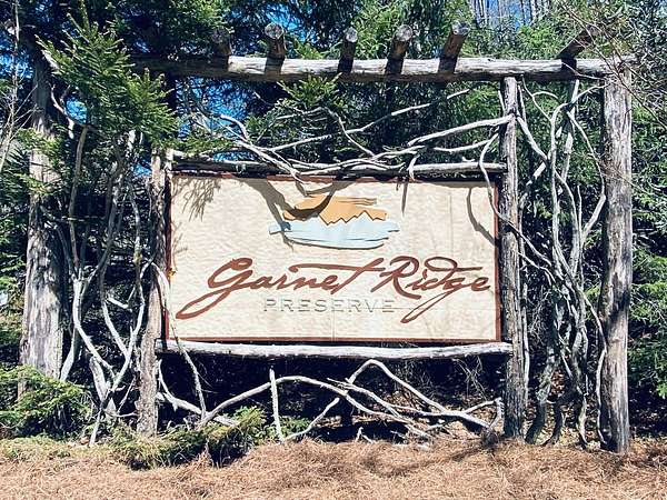 from Dillsboro go 441 South approx. 7.5 miles and make a left onto Pumpkintown Rd. In about 2.4 miles make a left onto Garnet Rd. Go through the gate and stay straight to the fork between Pitch Pine Dr. and HIckory Nut Trl. You are looking at the lot straight ahead. Go left to find the driveway and house pad on your right. Look for the sign.