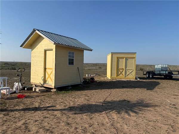 30.6+/- acres located just a few miles south of George West, within the Double Eagle Ranch acreage subdivision. This tract is currently used as a peaceful weekend retreat and features a quaint clean one-room cabin with a covered front porch offering expansive westward views and beautiful South Texas sunsets. Other improvements include a small workshop and a storage shed. Approximately one-third of the property has been cleared around the homesite, with the remaining two-thirds left in native brush, providing excellent wildlife habitat. The property offers hunting opportunities for Whitetail deer, Dove, Quail, and Hogs. The current owner operates on a small generator and hauls in water from a neighbor; there is no existing electricity or water well on site. Water wells are common in this subdivision, and the closest electrical service & water well is adjacent to this property. This property is ready for the next owner to make it their own either for a recreational getaway or future homesite in the heart of South Texas brush country.
