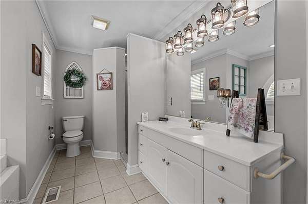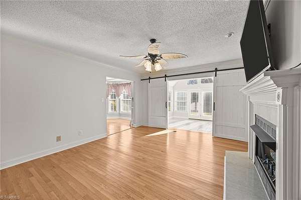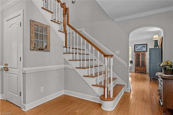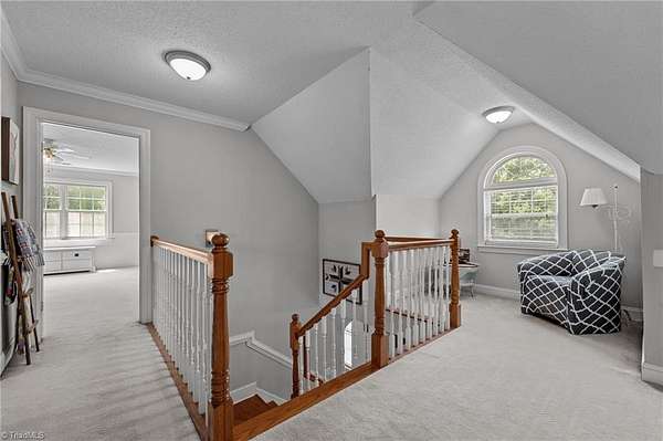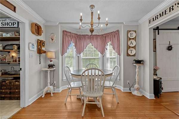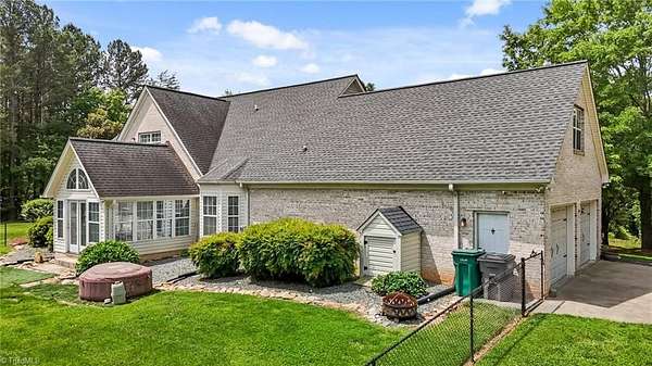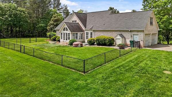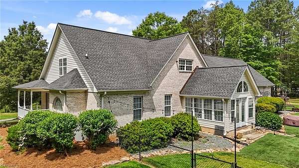 Escape to the tranquility of country living with this picturesque home nestled on 10+ acres less than 20 minutes from Winston Salem & Kernersville! This unique property offers the perfect balance of seclusion & accessibility with plenty of room to grow, explore, & make it your own. The covered front porch welcomes you into a very comfortable floor plan with space for all your needs, hardwood floors, neutral finishes, & tasteful design. Spacious kitchen with plenty of counterspace, storage, & eat in breakfast area. Living room with gas fireplace, barn doors & natural light from the adjoining sunroom. Additional den + formal dining on main. Main level primary suite with large en suite bath, separate shower & walk in closet. Upstairs features a cozy loft area, two large bedrooms, full bath, flex room or study with vaulted ceiling plus a sizable bonus room with its own staircase to main level. Partially fenced backyard, generator, oversized 2 car garage, & storage building.