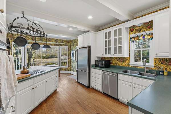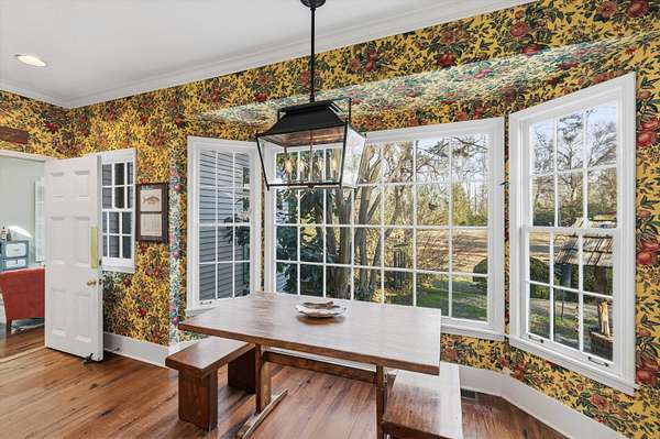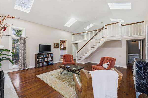 Est $4,722/mo5 bedroom, 3 bath farmhouse w/ wonderful front porch on Dogwood Rd 2.5+ acres. Formal living & dining rooms, 2 bedrooms and full bath off main, grand hallway. Large side screened porch accessible off living room. Quaint kitchen with island and breakfast area that overlooks rear yard and old well. A huge, vaulted primary with skylights boasts tons of light. Working fireplace in primary. Primary bath has jacuzzi, separate shower & double vanities. Access to rear deck from primary. Upstairs you enter a spacious living area that could be a kid hangout, reading room or office. There are two bedrooms and full bath up. The old barn is located on the rear, east side of the property and has its own address.