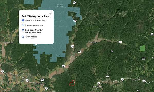 LAND FOR SALE IN VINTON COUNTY, OHIO 105± Acres - Secluded Recreational & Hunting Tract Near Tar Hollow Located in scenic Vinton County, this beautiful 105± acre wooded property offers outstanding recreational opportunities and exceptional privacy. Known for producing big whitetails, this region has long been a destination for serious hunters and outdoor enthusiasts. The property sits nearly 1/2 mile off the road, providing the kind of seclusion that is increasingly difficult to find. With diverse terrain, mature timber, and abundant wildlife habitat, this tract is ideal for hunting, trail riding, hiking, camping, or simply enjoying the outdoors. Conveniently located approximately 14 miles from Chillicothe, 3 miles from Tar Hollow State Forest, and about 24 miles from Hocking Hills, the property offers a private retreat while still being within easy reach of some of southern Ohio's most popular outdoor destinations. PROPERTY DETAILS 105± Acres Located in Vinton County Predominantly wooded property Mature hardwood timber including oak, maple, and poplar Flat ridge tops and rolling terrain Steep ravines and natural draws Building suitable for hunting cabin or camp Several storage barns Nearly 1/2 mile off the road for ultimate privacy Excellent hunting and recreational opportunities Abundant deer sign throughout Close to Tar Hollow State Forest and Hocking Hills CABIN AREA & STRUCTURES Situated at the top of the hill is a building that provides a great place to rest after a long day of hunting or exploring the property. This structure could serve as a base camp or hunting cabin for weekend trips and extended stays. Additional improvements include several storage barns that offer space for equipment, ATVs, and other outdoor gear. Hilltop building ideal for hunting camp Several storage barns on site Excellent setup for ATV and equipment storage No utilities currently available Generator power could easily be utilized for off-grid use This setup makes the property well-suited for those looking for a simple, functional hunting camp surrounded by nature. TIMBER, TERRAIN & WILDLIFE The land is predominantly wooded with a diverse mix of mature hardwoods. Several species of timber are present throughout the property, including oak, maple, poplar, and other native hardwoods. The terrain varies across the property, offering a mix of: Flat ridge tops Gently sloping hillsides Steeper ravines and draws Thick bedding areas and natural travel corridors This diversity in habitat creates excellent conditions for wildlife. The property shows abundant deer sign throughout, including well-used trails and bedding areas, making it an excellent hunting tract. Property highlights include: Mature hardwood timber Multiple species of oak, maple, and poplar Diverse terrain providing natural wildlife habitat Excellent whitetail deer hunting Ideal ground for trail riding, hiking, and recreation LOCATION & OUTDOOR RECREATION One of the biggest advantages of this property is its proximity to some of southern Ohio's best public recreation areas. Nearby attractions include: Approximately 3 miles from Tar Hollow State Forest Approximately 14 miles from Chillicothe Approximately 24 miles from Hocking Hills These nearby destinations offer thousands of additional acres for hiking, horseback riding, and exploring some of Ohio's most scenic landscapes.