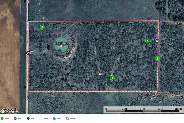 The property has a barbed wire fence around its perimeter which is in good condition. A pipe gated entrance is off of Gifford Rd., as well as good interior ranch roads. The land has SOLID mature mesquite trees, with a few large hackberries around the pond. This pond holds around half a surface acre of water when full. Lots of whitetail deer and feral hog come through this property; even turkey and aoudad have been caught on camera!