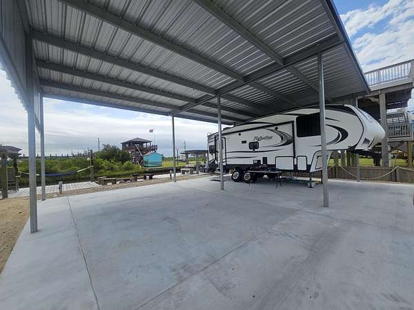 Ready to own your lot at the beach ? Just bring your RV! This lot has canal waterfront (Bay side) and minutes away to beach access. Sunset or sunrise are just beautiful ,relax sit on the custom wood chairs that stay with property or gather near the fire pit. Owners has done great upgrades to this lot! To name a few; 125 ft fenced treated wood on both side, water , electricity , private septic on property in place. ( There are 2 / 220outlet). 80 Ft of bulkhead , 1 60X15 treated wooded deck with fire-pit , outdoor sink area, outdoor shower,1portable port for jet-ski, heavy duty galvanized 40 X 30 RV cover suitable for 2 RV , 40 X 30 slab and newer septic tank (1 yr old) . This lot is close by the entrance of the subdivision HOA has private common grounds , private keyed beach access and 2 private boat ramps. Call now to get schedule a private tour!
