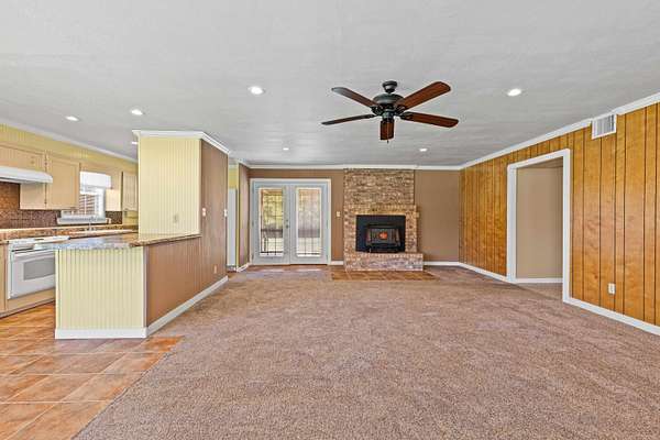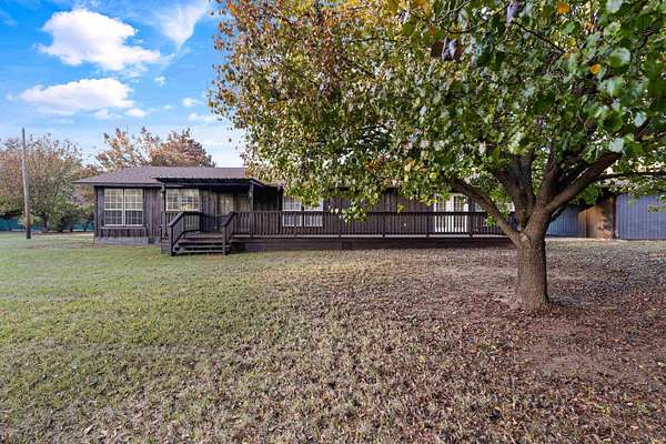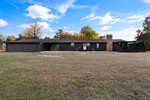 Acreage, updates, and classic East Texas character come together in this cedar-sided ranch-style home located just outside Gilmer in Gilmer ISD. Sitting on 9.379 elevated acres, this 2 bedroom, 2 bathroom property offers room to spread out while remaining convenient to town. The exterior of both the home and attached shop has been recently repainted, giving the property a refreshed, move-in-ready appearance. Brand-new front and back porches expand outdoor living options and feature new lighting that complements the home's character. The expansive front porch extends to the primary bedroom, providing direct porch access from the master suite--an inviting spot to start your day with a cup of coffee. Inside, the open-concept layout creates an easy, functional flow. The spacious living area is filled with natural light and centered around a wood-burning fireplace with insert. Both bedrooms are generously sized with walk-in closets, while a large hallway closet with built-in shelving adds convenient storage. Major systems have already been updated, including dual HVAC units replaced in February 2022, a roof approximately two years old, and a septic system installed in August 2015. The attached workshop features a concrete floor, electric service, three sliding doors, and ample built-in shelving, making it well-suited for storage, equipment, or projects. The partially wooded acreage provides a flexible mix of open space and shaded areas with room for a variety of uses. Whether you're downsizing, creating a small homestead, or simply looking for a home with acreage in East Texas, this home offers space, updates, and opportunity.