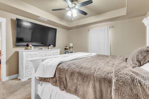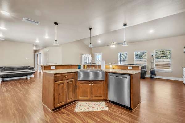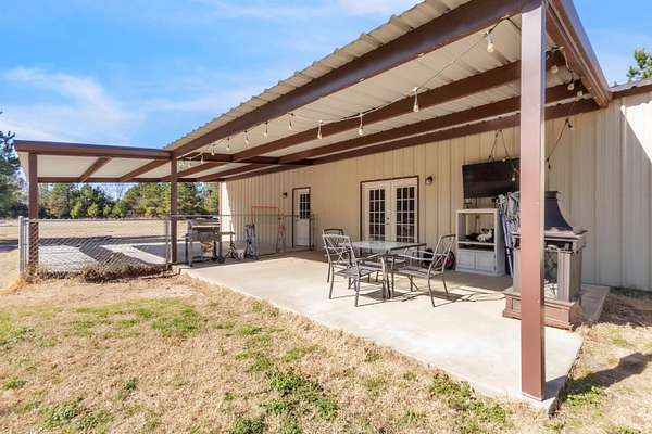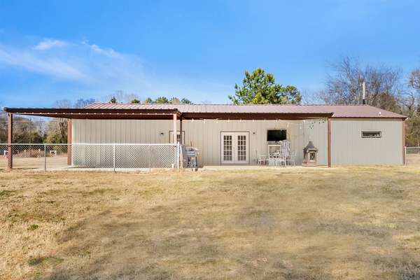 Built in 2019, this 4 bedroom, 2 bath barndominium sits on approximately 1.5 acres in Gilmer ISD. The home features an open concept floor plan with a spacious living area that flows into the kitchen and dining space, offering flexibility for a variety of uses. Bedrooms are well proportioned, and the primary suite includes a private bathroom. Additional features include a covered back patio and a fenced backyard, providing defined outdoor space. The property offers a combination of modern construction and acreage, with room for outdoor activities, storage, or future improvements. Located in a rural setting with convenient access to Gilmer and surrounding East Texas communities.