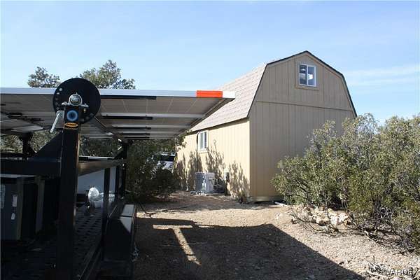 Spectacular views of the Hualapai and Aquarius mountains. Property comes with a 12' by 20' cabin with a sleeping loft. A water well has been drilled to 403' that produces about five gallon a minute with a storage tank that's plumbed into the cabin. Large solar system supplies power for the well and cabin all mounted on a portable trailer. The property is very seclusive with lots of Pinon Pine and Juniper trees. There's lots of wildlife including deer, coyotes, rabbits, bobcat and Javelina. The roads are generally good unless it snows or large amounts of rain. It's about 30 minutes from Kingman.