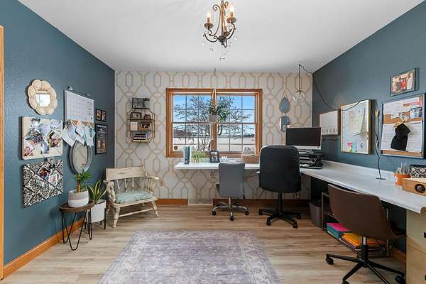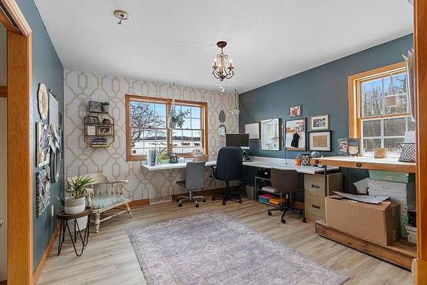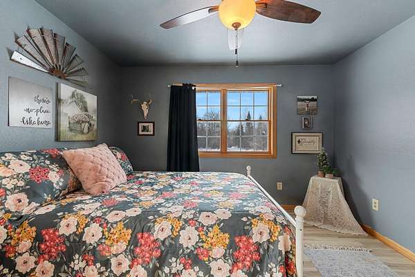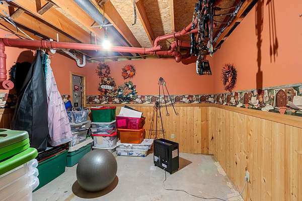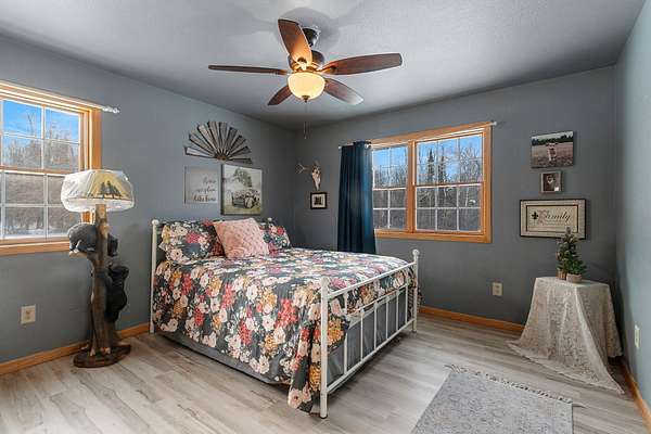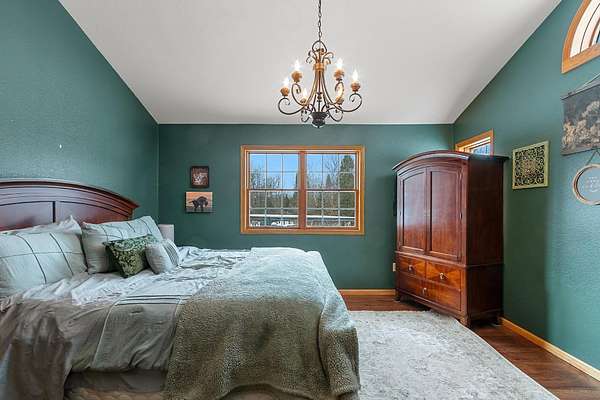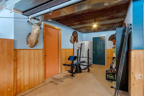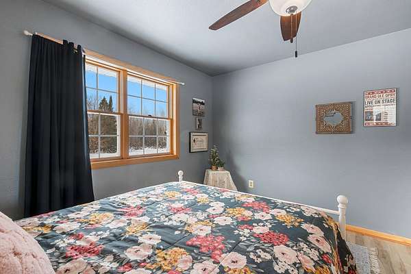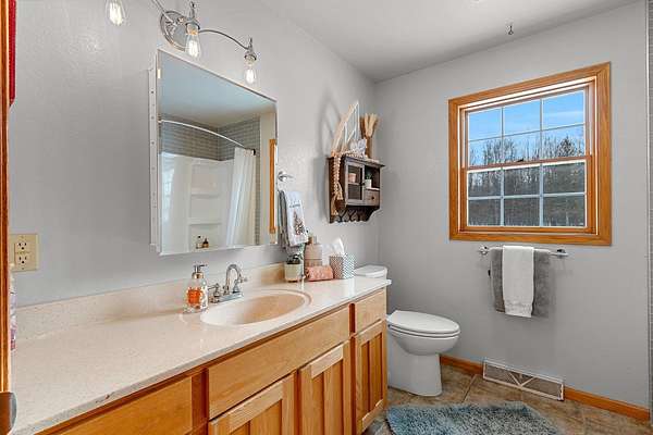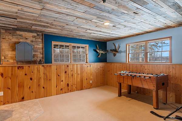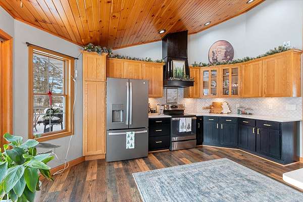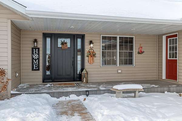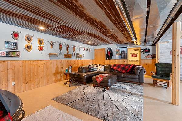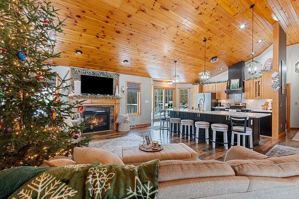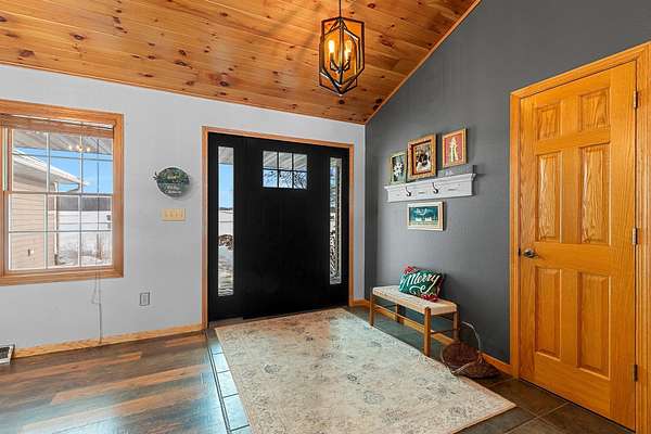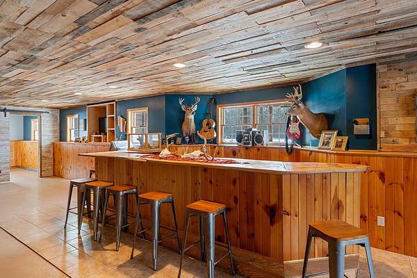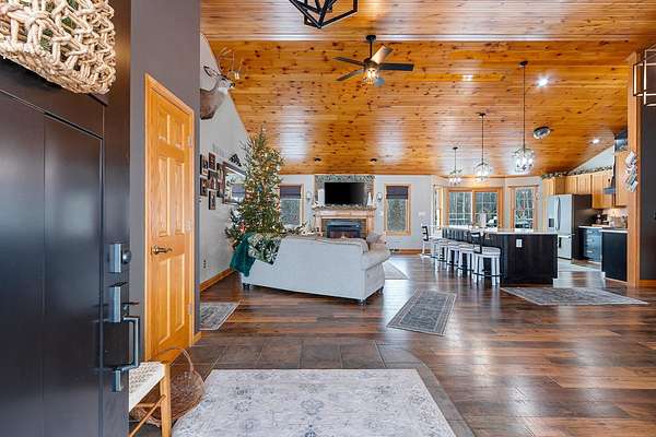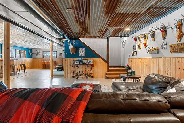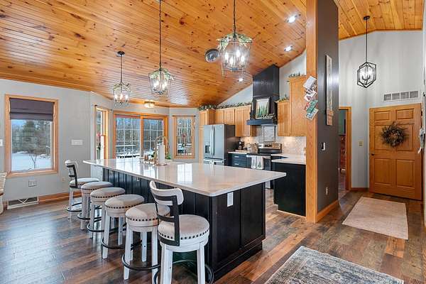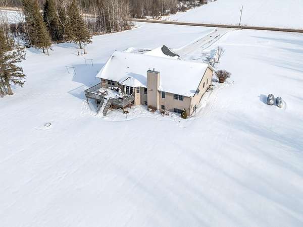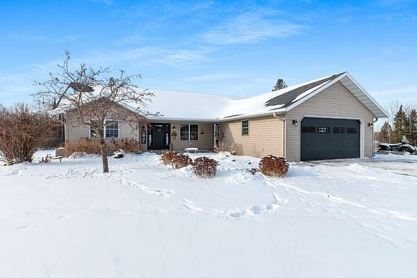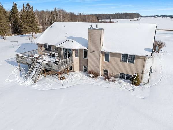 Well-maintained single-family ranch offering 3 bedrooms, 3 full baths, and 3,446 square feet of finished living space set on a beautiful 30-acre parcel. The inviting living room features a gas fireplace and vaulted ceiling, creating a warm and open atmosphere. The remodeled kitchen showcases a large island with white countertops that seats six, plank flooring, and a spacious dining area-ideal for everyday living and entertaining. Tongue-and-groove wood ceilings add warmth and character throughout. The primary suite includes a large bath with a whirlpool tub and a walk-in closet. The finished lower level expands the living space with a large recreation room, additional bedroom, and full bathroom-perfect for guests or extended living needs. Enjoy privacy, space, and a functional layout in this exceptional property.