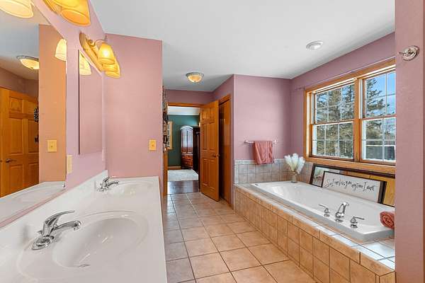 - Bath In Primary Bedroom, Cathedral Ceilings, Ceiling Fans, High Ceilings, Jetted Tub, Main Level Primary, Vaulted Ceilings, Walk In Closets