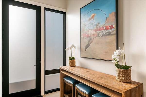 The home is being offered fully curated and furnished, with thoughtfully selected furniture and decor that complement the architecture and setting, allowing for a true turnkey experience.