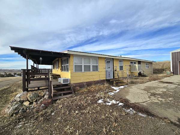 Enjoy the peace and privacy of country living while being just minutes from city amenities. This 4-bedroom home sits on 8.41 acres, perched on a hillside with panoramic views of the Badlands. The main level features a spacious living room, large kitchen with ample cabinetry and counter space, dining area, office space, one bedroom, & an updated full bathroom. The primary suite, built in 2022, includes a cedar walk-in closet & a new bathroom. An enclosed all-season sunroom off the dining area provides the perfect spot to relax & enjoy the views. Main-level laundry and a generously sized mudroom add convenience. The lower level offers two more bedrooms, a large storage room, a 1/2 bathroom, a dry bar, & a versatile space previously used as a man cave/reloading room that could be converted into another bedroom or hobby space. Outside, the property includes a detached 1,200 sq ft wood/coal-heated shop with two overhead doors, a 40' x 58' metal pole barn built in 2000 with tandem triple overhead doors, and additional outbuildings including a chicken coop, boxcar, and canopy. The property consists of two parcels totaling 8.41 acres and offers privacy, space, & endless possibilities!