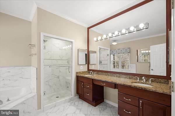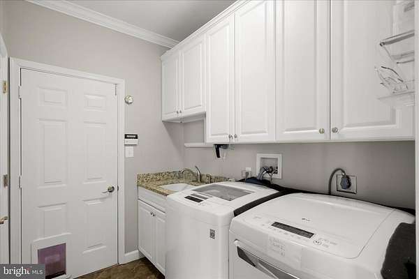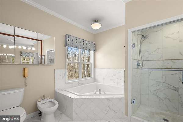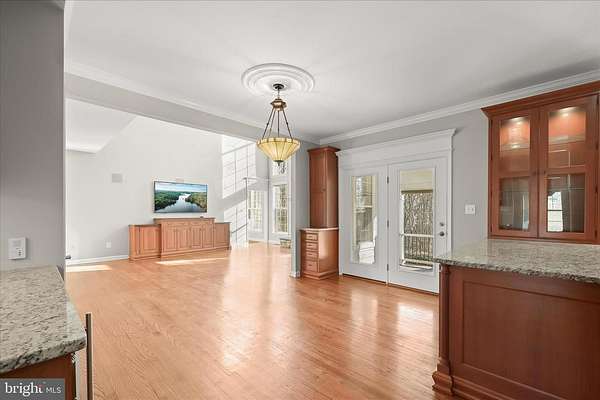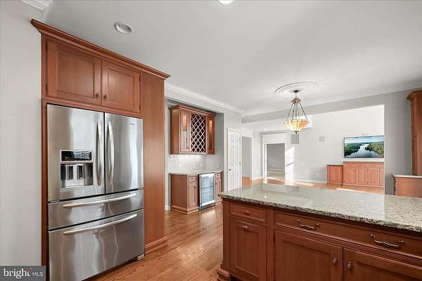 Nestled deep within a tranquil, wooded setting, this exceptional residence offers privacy, elegance, and a circular driveway leading to a stunningly renovated home by a renowned renovation contractor known for exceptional craftsmanship. Thoughtful updates include a stunning gourmet kitchen, a luxurious primary bathroom with marble finishes and steam shower, a gas fireplace, and gleaming hardwood flooring throughout the main level. Additional noteworthy renovations and additions include the rear, covered porch, hardscaping, HardiePlank siding and detached four car garage with high ceilings, a lift and loft above it, offering 8+ car garage parking in total. Step into the dramatic two-story foyer, highlighted by rich hardwood floors and refined accent molding. Formal living and dining rooms continue the sophisticated aesthetic, with custom trim work and a striking modern chandelier anchoring the dining space. The gourmet kitchen is a true centerpiece, featuring rich wood, soft-close, inlay cabinets, granite countertops, stainless steel appliances, a peninsula island, and a spacious dining area with access to the covered porch. Just off the kitchen, the expansive family room impresses with a two-story stacked stone fireplace, custom built-in entertainment center, and abundant natural light. Enjoy the convenience of a main-level primary bedroom suite, complete with a soaring vaulted ceiling, an expansive walk-in closet with custom organization, and a spa-inspired bath boasting marble tile, a dual granite vanity, a corner soaking tub, and a large marble steam shower with built-in seating. A main-level office with custom built-in bookcases provides the perfect work-from-home retreat. Upstairs, three generously sized bedrooms await. Two share a dual-entry full bathroom, while the third bedroom enjoys access to an additional dual-entry hall bath, offering both comfort and flexibility. The walk-out lower level is ideal for entertaining, featuring a spacious recreation room with a dry bar and refrigerator, along with a substantial storage room. Outdoor living is equally inviting, with a covered porch off the kitchen leading down to a patio and backyard oasis. The impressive detached four-car garage is a standout feature, offering extra-high ceilings, a vehicle lift, a loft, plumbing, and extensive storage shelving, perfect for car enthusiasts or hobbyists. Additional updates include HardiePlank siding, a redone driveway, well pump, heating and cooling systems and more. Ideally located with easy access to Howard County Schools, Western Regional Park, Cattail Creek Country Club, major commuter routes, shopping, dining, and entertainment, this extraordinary property seamlessly blends luxury, craftsmanship, and functionality in a serene natural setting.