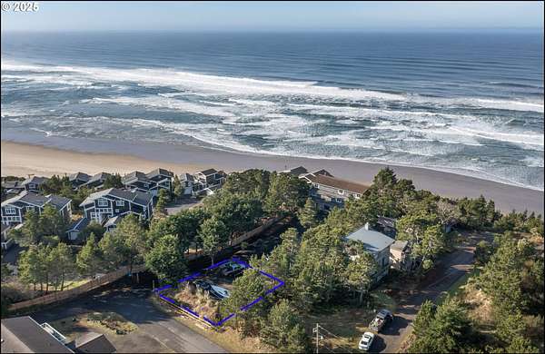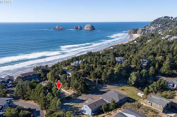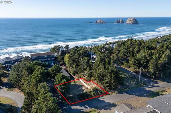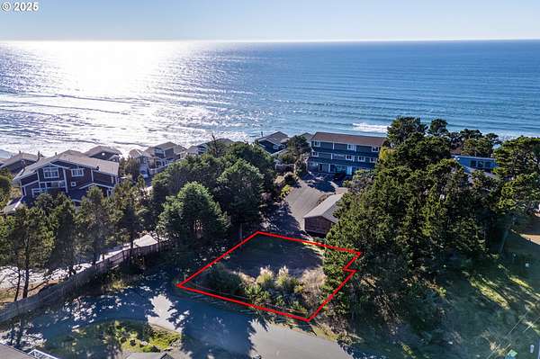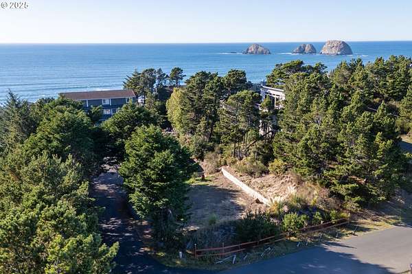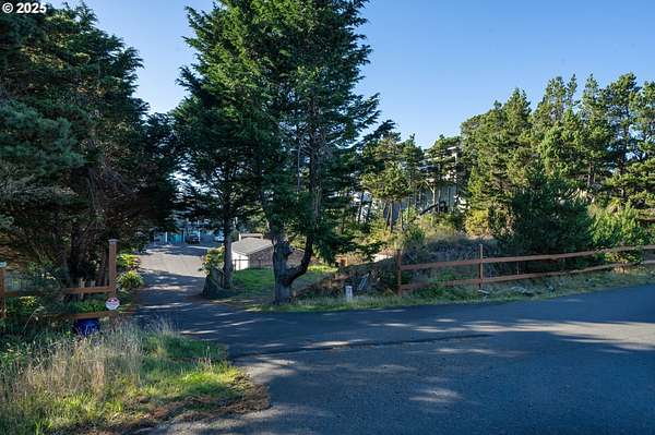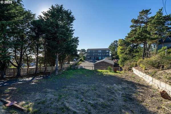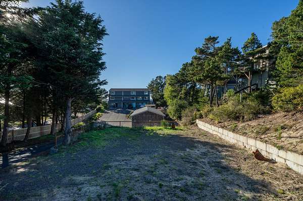 Est $1,345/moOCEANVIEW lot with coveted flat building site, rare in hilly Oceanside. Corner lot in neighborhood of beautiful homes. This single tax lot consists of at least 2 lots of record, so you should be able to build 2 or 3 small houses on it. A cottage cluster? All utilities in the street. High above tsunami zone. Note that the juniper trees along the south edge of lot can be trimmed or removed for the ocean view.
