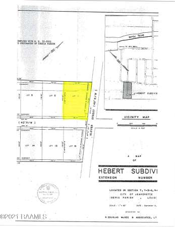 Est $164/moLarge corner lot located (vacant) on the corner of Glover and Katherine Street in the Hebert Subdivision in Jeanerette, LA. Property located just off of Main Street as you are coming into the City of Jeanerette.