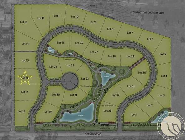 Now offering quality homesites within one of Billings' most exclusive gated communities, ideally located adjacent to Yellowstone Country Club. Private gate with key access and entry camera system provides added security and peace of mind. These estate-sized lots average ~20,000 SF and offer a well-planned setting within a cohesive, high-end neighborhood. The community is fully improved with 3.5 acres of landscaped parks, walking trails, and multiple pond features, along with interior road lighting for safety and ambiance. An eco-conscious irrigation system is piped to each lot for exterior watering, supporting long-term value. Public utilities include city water & sewer, MDU gas, and NorthWestern Energy. Conveniently located just minutes from west end shopping, Billings Logan International Airport, downtown Billings, and local hospitals.
