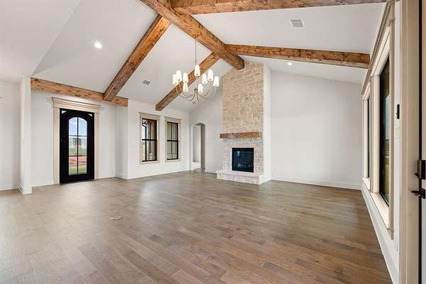 - Covered front porch ideal for enjoying peaceful Texas sunsets and back porch with fireplace to enjoy during colder weather