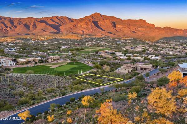 Full set of working drawings for a 3,796sf luxury residence is available. Incredible custom home site overlooking the signature 5th hole of the renown Dinosaur Mountain Golf Course. Hillside lot offers unobstructed views of the 5th green & the entire Superstition Mountain range. A true Sonoran desert setting, offering a unique opportunity for a very special residence enjoying the finest setting of views, privacy, & natural beauty. Exacting Design Guidelines fosters long term property values. Regulations set forth a residence's height, style, color, materials, & architectural integrity. Quiet, peaceful Gold Canyon. Pinal County is nearly 76% open space and is home to the Tonto National Forest, the second largest Nation Forest in the Arizona and 5th largest in the US.