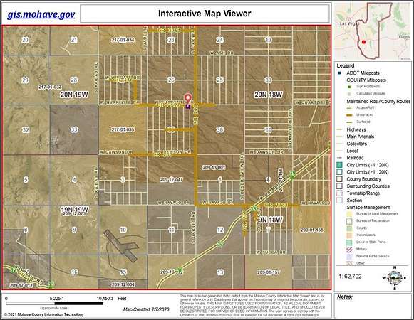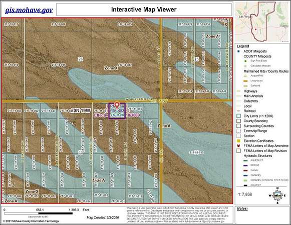Est $185/mo2+ acres with 360 degrees view over Valley and toward the Black Mountains. Not in flood zone. 3 BR septic installed on property. Just North of Hwy, 66 (Oatman Hwy), easy drive to Kingman for shopping over paved Oatman Hwy. and county maintained roads. Not in FEMA flood zone. 2+ acre to the west is also available if more land is desired. MLS 036144