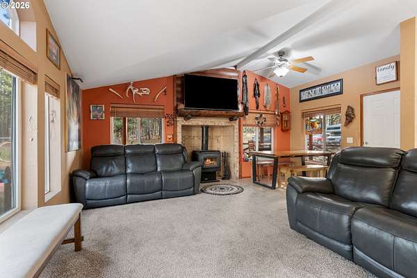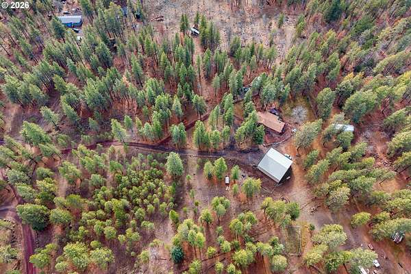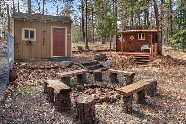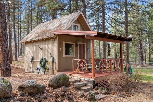 Welcome to your own private slice of the country paradise. Nestled on just over 5 peaceful acres surrounded by mature trees, this charming home offers the perfect balance of comfort, functionality, and rural tranquility.From the moment you arrive, you'll appreciate the privacy and serenity this property provides. The main home features a warm and inviting layout with comfortable living spaces, abundant natural light, and a cozy atmosphere that instantly feels like home. Updated kitchen with stainless steel appliances and new counter tops. New carpet in the living area and both bedrooms add comfort and warmth.Whether you're enjoying a quiet morning with coffee on the covered patios or hosting friends and family, the spaces are both welcoming and practical.Step outside and discover what truly sets this property apart. In addition to the main residence, you'll find multiple outbuildings ready to accommodate hobbies, storage, workshops, or creative projects. A separate, complete bathhouse adds convenience and flexibility, while two additional cabins provide incredible potential - perfect for guest quarters, multi-generational living, rental income, office space, or private retreats. There is plenty of parking that also includes two separate RV hook ups. A standout feature of the property is the 48x48 shop complete with a separate office, game room and loft for additional storage. Whether you need space for tools, equipment, recreational vehicles, or a dedicated workspace, this shop provides functionality and versatility.The land itself is a dream for those who value space and self-sufficiency. Established garden area is ready for your vegetables, flowers, or orchard expansion. Towering trees offer shade, beauty, and natural privacy, creating a peaceful environment where you can truly unwind. There's room for animals, recreation, or simply enjoying the wide-open skies and fresh country air.