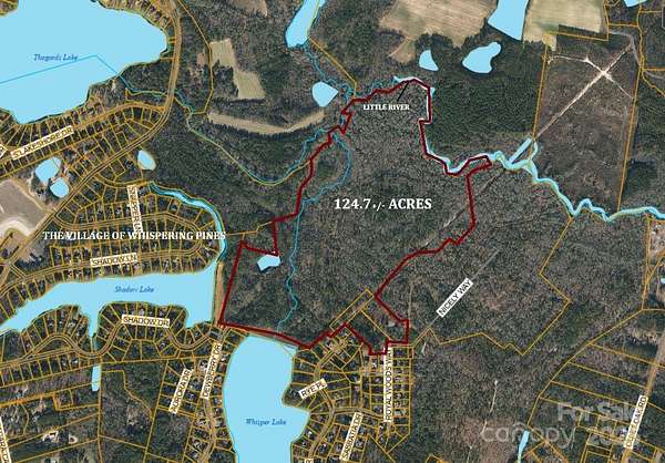 RARE LARGE ACREAGE INVESTMENT OPPORTUNITY ADJACENT TO THE VILLAGE OF WHISPERING PINES! 124+/- ACRES ON THE LITTLE RIVER. DIVIDE THIS PROPERTY INTO 10-ACRE EQUESTRIAN PARCELS OR DEVELOP THE PROPERTY INTO YOUR PRIVATE EQUESTRIAN ESTATE ON THE RIVER. This property is in the Extraterritorial Jurisdiction (ETJ) of The Village of Whispering Pines and could potentially be annexed into the village if the the buyers use of the property is mutually beneficial. This would allow access to the lakes, parks, police department, fire, trash services, and many more amenities. Sandy soils should make this property ideal for development and equestrian uses. Smaller parcels are subject to some easements for septic or utilities. Additional parcels adjacent. Please see MLS #4264578.