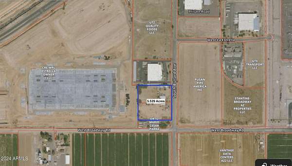 Don't miss out on the incredible opportunity to own approximately 5.5 acres in the industrial complex at Bullard and Broadway Roads in Goodyear. This prime location is surrounded by data centers, industrial warehouses, and experiencing explosive growth. Situated just south of the Goodyear airport and rail line, this property offers a huge investment potential. Take advantage of this rare chance to own a piece of land in a rapidly developing area with endless possibilities for development and growth. Offering is 2 properties and includes 4204 S Bullard.Property is connected to City water and sewer is available at the site.Listing agent is related to seller