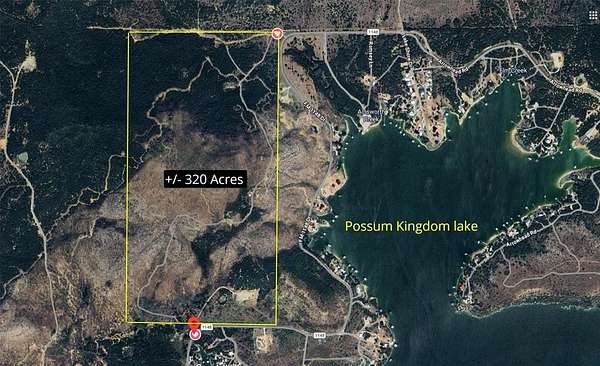 An exceptional opportunity to acquire 320+- acres overlooking Possum Kingdom Lake in the heart of Palo Pinto County, featuring Caudill Mountain, a named county summit rising to approximately 1,360+ feet in elevation. This unique high point offers commanding views of Possum Kingdom Lake on one side and a sweeping valley panorama on the other, creating a rare dual-aspect vantage seldom found on privately held ranch land.