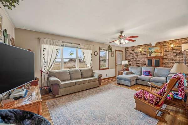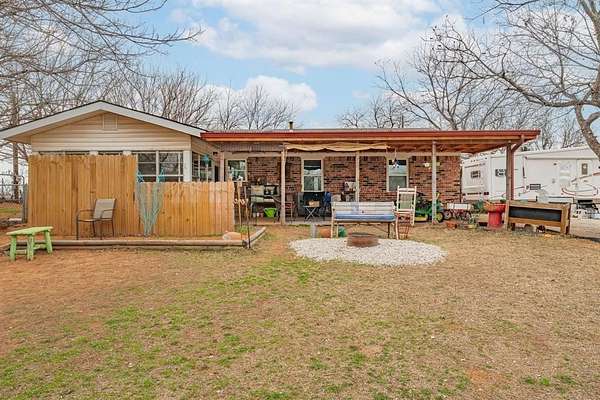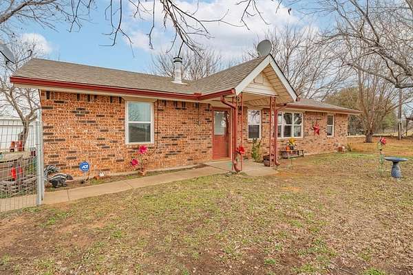 Very impressive, well-maintained, 3 bedroom, brick Country Home on 3.08 acres m-l, located outside of the city limits just south of Graham near the Brazos River Bridge; This super-charming home features a plethora of custom amenities such as an open concept living, dining and kitchen; Luxury, water-proof vinyl plank flooring throughout, ceiling fans throughout, new natural gas line from the house to the road, newer, white kitchen cabinetry, Corian style countertops, under-cabinet lighting, lazy Susan, double sink, dishwasher, refrigerator, vent-a-hood & spacious walk-in pantry; Cute sunroom for house plant lovers and nature lovers who enjoy a serene space for enjoying their morning coffee while spotting an occasional deer; Central Heat & Air with natural gas heat and electric air along with a few natural gas wall heaters in various rooms; Attic fan; Spacious hall bathroom boasting a step-in, oversized shower, extra-large vanity with sink & make-up area & toilet; Split bedroom arrangement; Primary bedroom has a half bath offering a vanity with sink and an elevated toilet; Well-appointed laundry room with washer & dryer connections; Two car oversized detached shop-garage combo is 24' X 28' with concrete slab, electricity and remote controlled doors with a side walk-thru door; The additional one-car metal garage is 22' X 15'; The RV Port is negotiable depending on offer; The metal barn on concrete slab is 20' X 16' and offers ample storage for your tractors, boat or ATVs; A functioning 65' deep water well is located in the handy Wellhouse-Garden Shed with concrete floor, a new well pump, control box, pressure tank & 220V electrical outlet; Electrical updates including some updates in the attic and a newer panel box; New windows; Covered patio with wood decking and brick pavers; Rain gutters; Security lighting; Perimeter fenced with hog panel lowers and 2 strand uppers; Cross fenced; Double gate entrance; Dog run; Out-in-the-country vibes but close to town; Must see!!