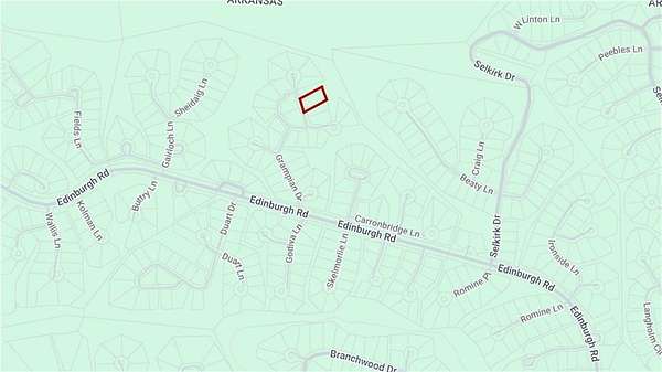 From I-49 exit 102, head East on Rocky Dell Hollow Road. Left on Highlands Blvd, Right on Glasgow Rd. Aprox. 2.3 miles turn left onto Edinburgh Road. In .7 miles turn Right onto Grampain Drive.