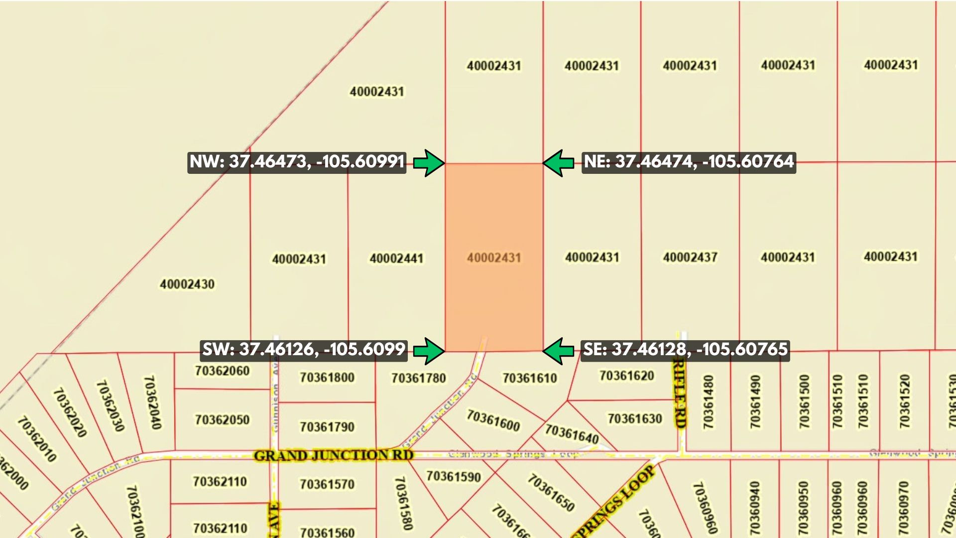 That part of Tract 21 lying South of Highway 160 in Section 1, Township 30 South, Range 74 West of the 6th P.M., containing 19.11 acres more or less, as shown by the map of the Trinchera Colony Tracts, County of Costilla, State of Colorado. There is reserved a 15 feet width easement along all boundaries for roads and utilities.