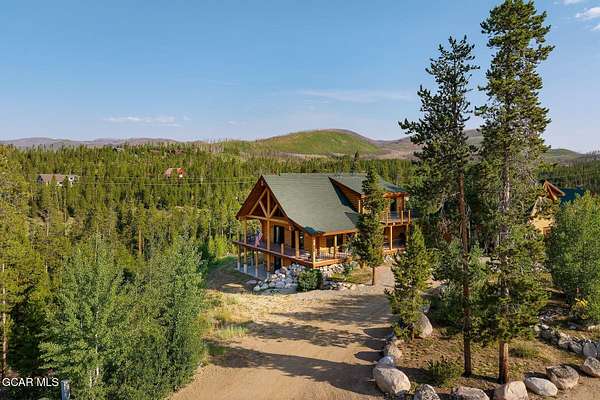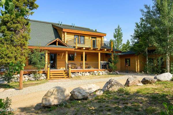 Meticulously maintained log home set on 15 private acres overlooking Lake Granby. This legacy property offers unmatched privacy, endless recreation, and unforgettable gathering spaces for family and friends. The main residence features 5 spacious bedrooms and comes fully furnished, blending mountain charm with comfort. A guest apartment above the garage provides additional space for visitors. The home includes a 2-car attached garage plus a large detached shop-perfect for all your mountain toys and projects. Enjoy 2 miles of private walking and snowmobiling trails carved into the property. The expansive grounds are ideal for hosting family reunions, weddings, and celebrations all set against the backdrop of breathtaking views of Lake Granby and the Continental divide.