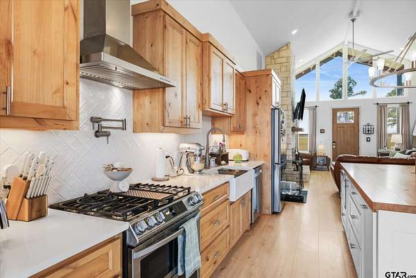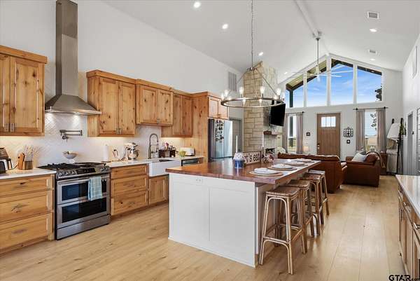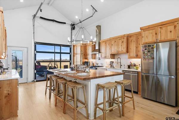 Built just two years ago and sitting on 4 beautiful acres, this is the kind of property buyers ask for all the time. A gated entrance leads you down the drive to a modern farmhouse-style home with big windows, clean lines, and a front elevation that really stands out. Inside, the main living area feels open and bright with vaulted ceilings, tons of natural light, and a beautiful stone fireplace. The kitchen sits right at the center of the home with warm wood cabinetry, a large island, and one of the standout features of the house: an industrial glass garage door that opens from the kitchen to the outdoor living area. Open it up on a nice day and you’ve got the perfect setup for hosting friends or just enjoying the view. The home offers 3 bedrooms and 2 bathrooms, including a spacious primary suite with a fireplace in the master and a huge walk-in closet with a built-in safe room/armory. Outside, the 4 acres give you room to spread out, whether you want animals, a garden, or simply the peace and quiet that comes with country living. And if you’ve been wanting even more land, additional acreage is available. If you’ve been hoping to find something newer with land, character, and a little bit of wow factor, this one is definitely worth seeing in person!
