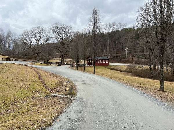From Andrews, take 19/74 towards Bryson City. Turn right at the red covered bridge. Go over bridge and through gate (will need gate code) Follow Granny Squirrel Drive to property on the right. Sign