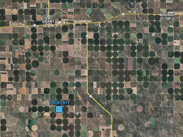 This property is located approximately 7.5 miles south of Grant, Nebraska, just off Central Avenue. This property includes 158.19 FSA Cropland acres m/l of which 147.9 certified irrigable acres under pivot, with the balance utilized for dryland. The irrigation pivot is a 1999 7-tower Valley 7000 with a 100 HP electric motor and will be transferred with the sale. Located in the Upper Republican Irrigated district this property has a water allocation over 62.5 inches over 5 years. There are 25.30 inches available through 2027. The farm lease has been terminated, and the farm will be 'open' for the 2026 crop year.