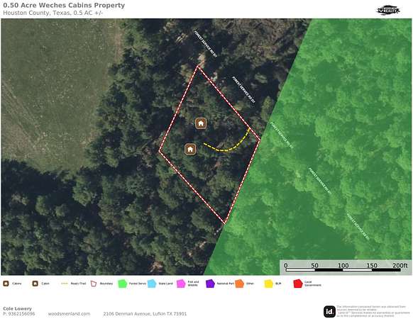 CABIN RETREAT BORDERING NATIONAL FOREST NEAR NECHES RIVER AND BRUSHY LAKE! This property sits in what likely is the most recreationally rich and naturally immersive areas in all of East Texas. Bordering the Davy Crockett National Forest, and located just minutes from the Neches River, Brushy Lake, Neches Bluff Overlook, Big Slough Wilderness Area, Ratcliff Lake Recreation Area, the renown 4C Hiking Trail, Mission Tejas State Park, and Caddo Mounds State Historical Site, this property is in the heart of one of the most dynamic public land zones in the state. On the property you'll find two small hunting cabins, offering a head start toward building out the ultimate basecamp or weekend retreat. These cabins were constructed in mid 2024, but were never finished, and are both 20 feet long by 12 feet wide, with 6 foot porches. Theres no floodplain, no restrictions, and the property is positioned for anything from camping to tiny home living to long-term hunting use.