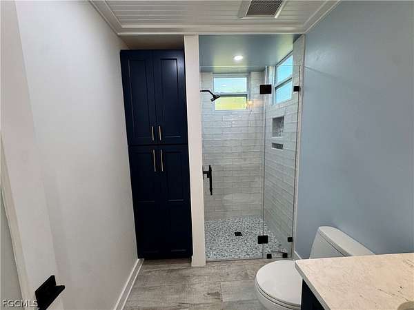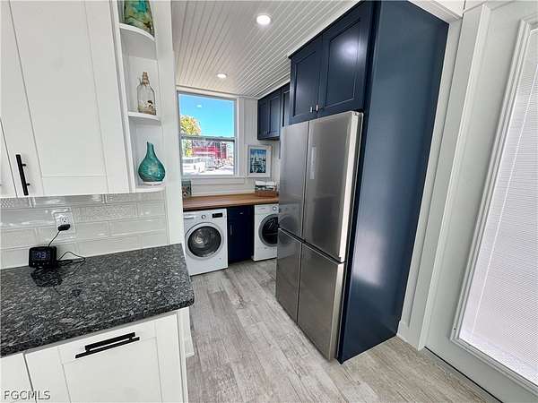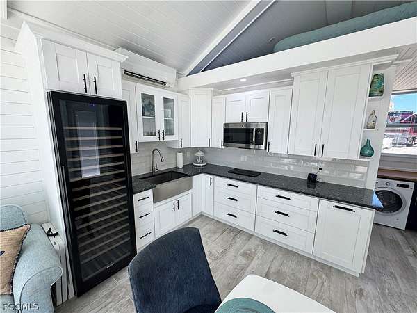 Lot 237 Coastal Vibes, Corks Popping and Completely Turnkey! Welcome to your sun-soaked slice of paradise! Lot 237 is all about the coastal vibe, it is light, airy, relaxed, and just the right amount of fabulous. It's being offered turnkey, with only a few small personal treasures heading back with the owners. Translation? Bring your suitcase and your wine collection. Wine aficionados, you've officially found your people. From the moment you arrive, the peaceful fountains and the HUGE wraparound common area embracing two sides of the lot set the stage. Extra space means extra breathing room, and extra room for friends who just happen to stop by at happy hour. Funny how that works. Lounge on the raised patio that practically whispers, Pour another glass and stay awhile. Mature shade trees and fresh tropical landscaping with bold black mulch give it that polished, island-inspired look. It's not just beautiful, it's a whole coastal mood. And then, the coach house. This 16 x 24 beauty with a bonus loft delivers effortless coastal vibes from the second you step inside. Bright shiplap walls and ceilings create that soft, beachy glow. The kitchen features crisp white cabinetry, generous storage, room for a large wine fridge, priorities, of course, and all appliances are included. Easy. Breezy. Done. The stylish laundry area shines with rich navy cabinetry, a warm wood folding counter, and a Bosch front-loading washer and dryer, yes, included too. Because even laundry deserves a little glam. The bathroom is a showstopper. Enter through the frosted glass door, check out the Floor-to-ceiling tile, sleek glass shower door, and smart storage fully remodeled in 2024. It feels brand new, because it practically is it has not been lived in since the remodel And now let's talk lifestyle. The Caloosahatchee River flows peacefully along the edge of the resort, perfect for scenic walks, boat watching, and those tranquil sunset strolls that make you forget what day it is, and honestly, does it even matter? Enjoy the expansive resort pool with plenty of loungers and shaded umbrellas, soak in the hot tubs, or gather at the River Clubhouse featuring a bar, billiards, library, and a full calendar of entertainment, live music, trivia nights, themed dinners, holiday celebrations, and yes, meals are often served right there when you simply don't feel like cooking. We support this decision. Stay active with pickleball, bocce, Zumba, line dancing, and countless clubs including the Creations Guild, remote control boating on the lake, a remote control race track, and the ever-popular Texas Hold 'Em games, where bragging rights are very real. Even your four-legged companions are living their best life with a beautifully maintained dog park. Because at RiverBend, everyone is VIP. This exceptional lot blends beauty, convenience, and luxury Class A motorcoach living into one unforgettable opportunity.