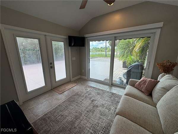 Lot 276, A Captivating Retreat in RiverBend Motorcoach Resort. Step into the charm and tranquility of Lot 276, a beautiful pull-in property designed to embrace both comfort and Florida's stunning natural beauty. This lovely lot features a concrete pad with an extended lanai of pavers, perfect for enjoying your morning coffee or unwinding under the glowing evening skies. The coach house, newly built in 2023, offers a fresh and inviting 12' x 18' living space. Inside, you'll find a brand new, never used, sofa, TV, and a bright, open feel with French doors on one side and sliding glass doors that open to the lanai, creating a seamless blend of indoor comfort and outdoor living. A stacked front-loading washer and dryer are conveniently tucked behind a louvered door, while the full bathroom includes a shower/tub combo and a cozy linen closet. Every detail has been thoughtfully designed for both function and charm. Beyond your lanai, a large lakeside common area shaded by mature trees overlooks a sparkling fountain that dazzles by day and glows beautifully at night. It's a serene setting where you can watch remote-control boats skim across the water or simply relax and take in the peaceful view. There's also plenty of green space for your furry friends to stretch their legs and enjoy the outdoors. Just a short walk to the resort pool, you'll have quick access to all the fun and activities RiverBend is known for. This premier Class A Motorcoach Resort features a heated pool and two hot tubs, a putting green, remote-control race track, bocce and shuffleboard courts, and a fitness room for your daily workouts. Mornings often bring water aerobics or head to yoga in the community room, while afternoons fill with friendly games of water volleyball and poolside laughter. And then, there's the lifestyle that makes RiverBend unforgettable. Wander across scenic walking bridges that span the lakes, or stop by the River Clubhouse Tap Room for trivia nights and good company. The community buzzes with social clubs and activities including Texas Hold'em, billiards, card games, and Mahjong, offering something for everyone. As evening falls, RiverBend comes alive. Neighbors gather at the riverfront clubhouse for live music, social events, and on holidays, the joyful golf cart parades that light up the community. Boaters can set off from the private marina onto the Caloosahatchee River, while everyone shares in the nightly magic of sunsets painted in soft pastel streaks across the sky. This west-facing lot will captivate you from the moment you arrive. Bask in the warmth of the afternoon sun and stay to watch as the sky transforms into a canvas of color at sunset. Lot 276 is more than a property, it's a slice of tranquil tropical grandeur, where beautiful memories are made and cherished for years to come.