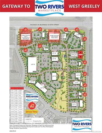 TWO RIVERS MARKETPLACE IS AT THE GATEWAY TO WEST GREELEY. Two Lots Under Contract - 4 Lots Available For Sale in Phase I. 11 Lots on Highway 34 Business and 83rd Ave. designed for QUICK AND EASY access with many convenient access points, including an upcoming roundabout at 83rd and 12th Street. The City of Greeley is development friendly and encourages end user submittals early on for quicker development turnarounds.