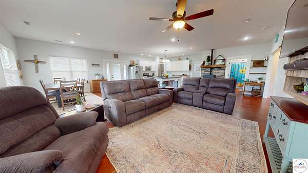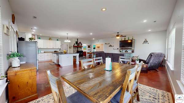 Leave the noise behind and discover the freedom of country living on 19.53+- scenic acres just outside city limits in the Green Ridge School District. This inviting 4-bedroom, 2-bath home offers the perfect blend of rustic charm, comfort, and wide-open space to truly spread out. Inside, an open-concept layout brings the living, dining, and kitchen areas together--ideal for everyday living and easy entertaining. The kitchen is the heart of the home, featuring a generous working island with breakfast bar seating, a pantry, ample cabinet and prep space, and select appliances already in place. The spacious primary suite provides a private retreat with a walk-in closet and en-suite bath, while three additional bedrooms offer flexibility for guests, a home office, or hobby space. This all-electric home is designed for cozy comfort, complete with a pellet stove and heated flooring for those cooler months. Step outside and soak in the peaceful surroundings from the covered wrap-around patio--perfect for morning coffee, evening sunsets, or hosting family and friends. A full metal roof and detached garage add durability and practicality to this countryside escape. If privacy, acreage, and a slower pace of life are on your wish list, this property checks all the boxes. Schedule your showing today and experience country living at its best.